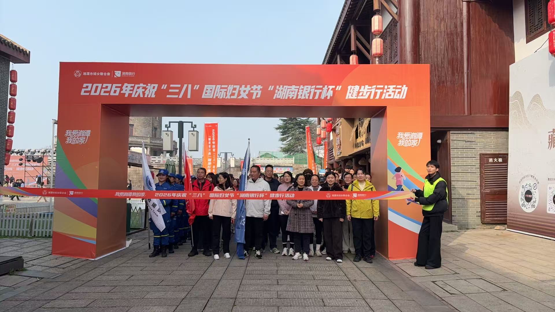 为庆祝第116个“三八”国际劳动妇女节,3月6日上午,由湘潭市妇联、市文化旅游广电体育局及市总工会主办的“我爱湘潭我的家”2026年庆祝“三八”国际劳动妇女节“湖南银行杯”健步行活动在窑湾历史文化街区举行。党委副书记向前带领taptap点点女教职工代表队参加活动。