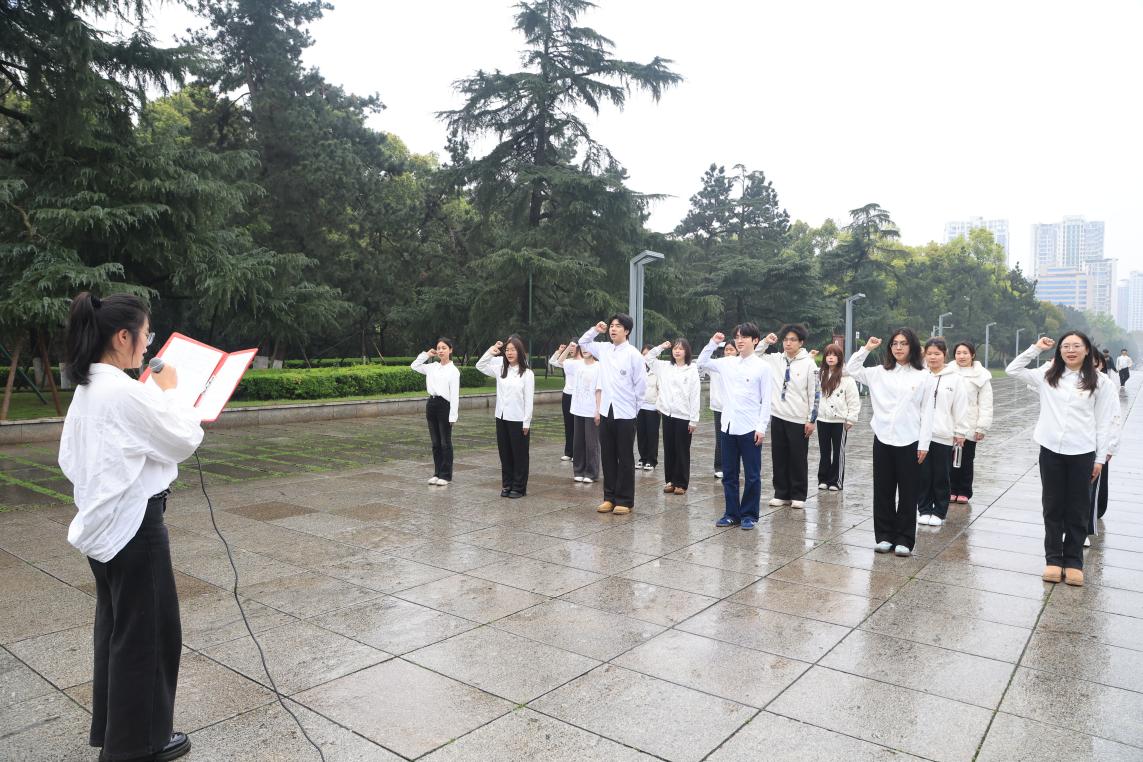 参与成员们在烈士塔前整齐列队,向为民族独立、人民解放和国家富强英勇献身的革命先烈鞠躬,以最朴素诚挚的方式表达对英烈的缅怀之情与崇高敬意。随后,大家高举右拳重温入团誓词,铿锵有力的誓言在烈士塔前久久回荡,彰显出新时代青年传承先烈遗志、勇担时代使命的坚定决心。