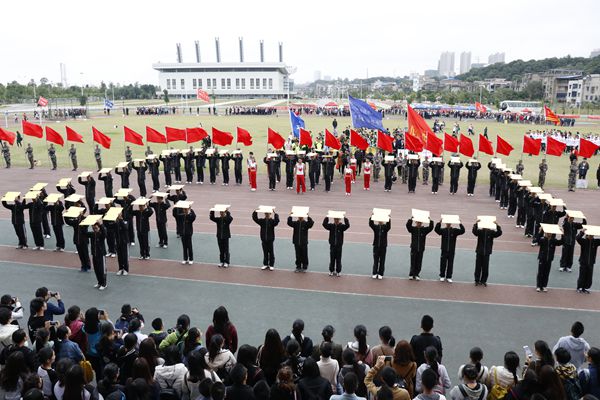 在同学们的呐喊声和欢呼声中,各方阵的同学们伴随着动感的音乐,进行了精彩的表演。第一个出场的是计算机与通信学院,她们身着草绿色上衣,洋溢着青春向上的气息,以稳健的步伐,嘹亮的口号走到主席台前。他们表演了舞蹈《青春修炼手册》和《倍儿爽》,展现了属于他们花季的主题。机械工程学院的“齿轮图”、建筑工程学院的“打桩图”、化学化工学院的“爱心图”、纺织服装学院的“时装秀”、还有应用技术学院的压轴出场,都吸引了大量的目光,台上台下沉浸在兴奋和热烈的氛围中。