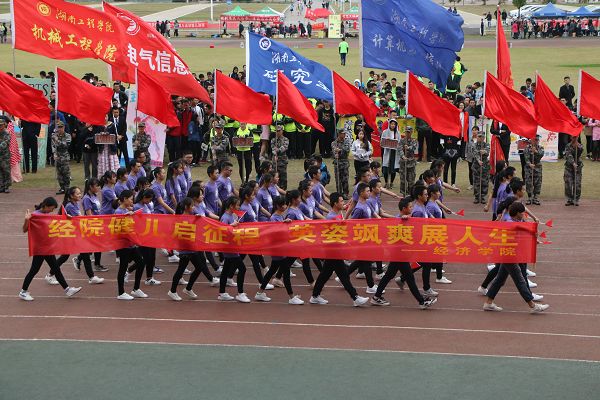 校运会是弘扬奥运精神,展示青春风采的一次盛会,也是全面落实全民健身理念,检验阳光体育活动成效的盛会。开幕式一开始是各代表队的出场和表演。迎着强劲的秋风,伴着充满青春活力的鼓乐,13个学院和研究生代表队英姿飒爽、激情满怀地走过主席台,展示了各自独有的风采。