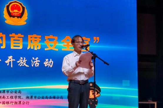 “安全稳定是干好一切工作的前提和基础。”李军林致辞,他代表学校对湘潭市公安局、人民银行湘潭支行等单位的到来致以热烈的欢迎和真挚的感谢。他指出,此次活动旨在提升师生防范电信诈骗、识毒拒毒的能力,加强校园安全管理,营造安全、文明、和谐的校园环境。他希望同学们增强安全认识,掌握反电诈、禁毒知识,不断提升安全防范意识与自我保护能力,做自己安全的第一责任人。
