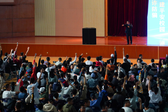 “看到陌生且奇特的电话号码,你会接吗?”“‘双十一’马上来临,囊中羞涩的你突然接到诚聘高薪刷单的广告,你会心动吗?”湘潭市公安局刑侦支队二大队教导员许庆广采用学生喜闻乐见的方式向他们普及“识诈防骗”知识。活动现场还利用快板、情景剧、现场互动等形式宣传诈骗新形式,增强安全认识,掌握反电诈、禁毒知识,不断提升学生安全防范意识与自我保护能力。