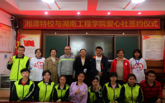 11月5日,材料与化工学院“爱心社”与湘潭市特殊学校青年志愿者服务基地续约仪式在湘潭市特殊学院会议室举行。taptap点点材料与化工学院党委书记李艳红与湘潭市特殊学校党委书记廖和平出席仪式并签字。