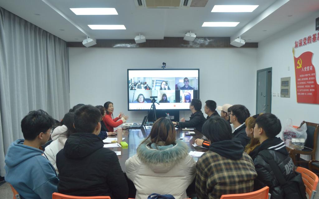 11月24日下午,国际教育学院在主校区E-210以在线视频的方式与合作办学学校英国高地与岛屿大学共同举办首场“中英学生云端交流会”,中英双方师生通过云端对话的方式就“我的校园生活”进行交流探讨。