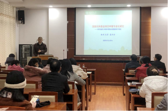 12月29日下午,扬州大学商学院院长、博士生导师秦兴方教授在中层干部会议室作“国家社科基金项目申报专业化研究——项目选题与申报中需要重点把握的四个维度”的专题讲座。报告会由副校长陈赤平教授主持,经济学院、管理学院、马克思主义学院、外国语学院100余名教师到场聆听。