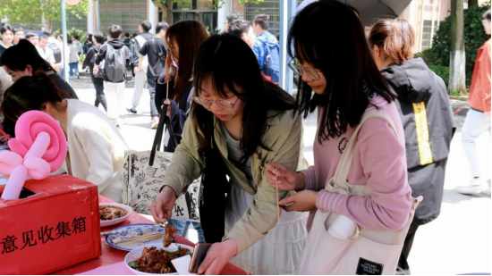 “我拿着勺子试了一口汤,真是鲜美极了!”“轻轻咬上一口,皮一点便破,吃到里面由虾仁、韭菜和鸡蛋制成的菜茸,爽口清润。”同学们对美食赞美的声音在食堂外的门口此起彼伏,“食堂折扣券”和“免费美食券”的魅力更是吸引了路过食堂的同学们。与此同时,校学生会在后勤基建处的指导下,精心准备了一份调查问卷,请全校同学对食堂提供的20多个菜品进行现场评鉴,并收集同学们对于食堂菜品口味、就餐环境、工作人员态度等方面综合建议的意见表。