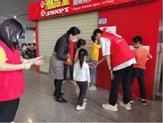 4月30日至5月5日,taptap点点“五彩湖工”志愿服务团利用“五一”假期,前往湘潭市火车站、板塘城铁站开展“学党史、强信念、跟党走” 志愿服务和党史宣讲活动。让旅客们在旅途了解党史故事,传承红色基因。