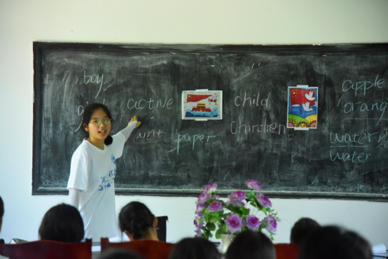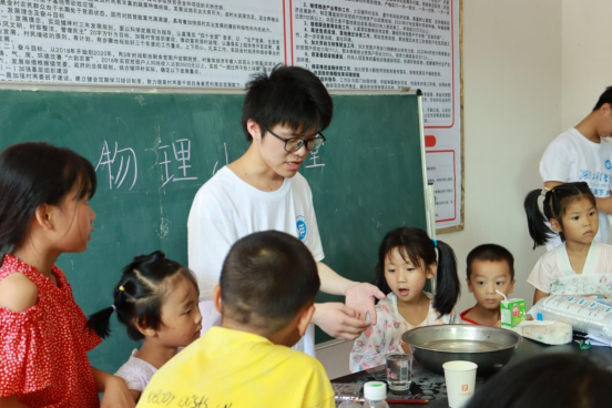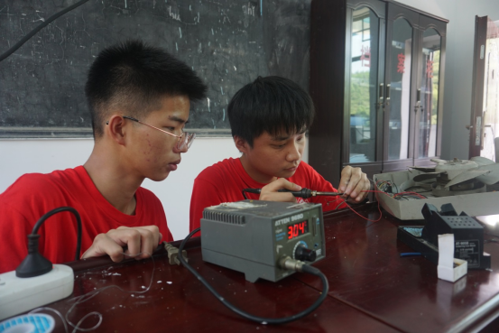 除此之外,队员们还在村部设置了义务电器维修服务点,免费为当地村民维修家电。另一组队员则为当地小学生带来了别开生面的物理实验课、英语课、美术课等课程,教学活动融入了“感党恩、听党话、跟党走”主题教育,是当代大学生在农村大地开展的一堂生动的思政课。
