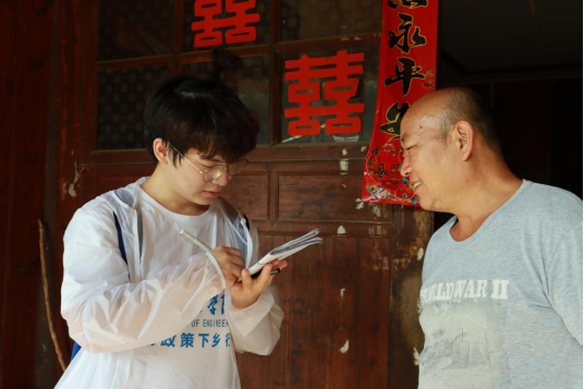 队员们对村民进行国家资助政策宣讲