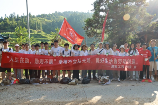 实践团成员还将团日活动开到了田间地头,他们拿起锄头铲子,开展除野草、挖沟渠劳作志愿活动,让“改善人居环境 构建美丽乡村”落实到实处。一面旗帜,二十余人,在水稻田旁、在大道上、在水沟前挥汗劳作,野草不见了,污泥消失了,剩下的只有干净的大道,通向村部清澈的水渠。