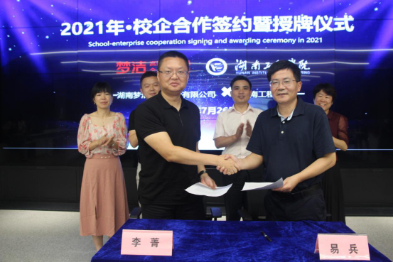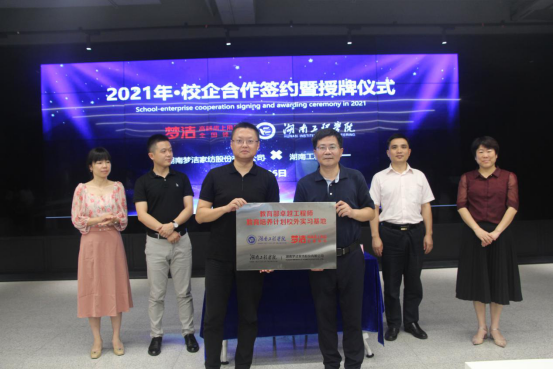7月26日上午,校长易兵、科技处处长黄中华、教务处处长方正军、纺织服装学院院长周衡书一行走访了湖南梦洁家纺股份有限公司,并与公司签订产学研合作协议,挂牌“产学研合作基地”“教育部卓越工程师教育培养计划校外实习基地”。