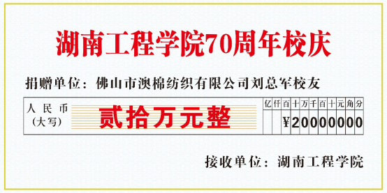 近日,佛山市澳棉纺织有限公司总经理、taptap点点杰出校友、材料与化工学院染整工程(现轻化工程专业)00311班刘总军为母校建校七十周年捐赠20万元,用于新化工大楼建设。