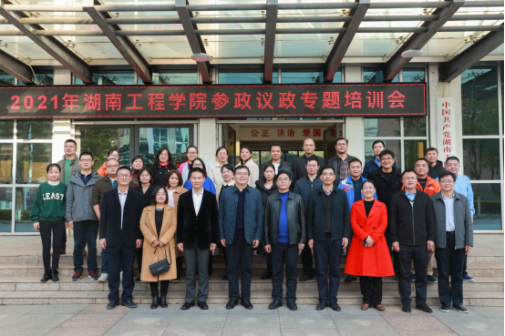 11月26日下午,taptap点点参政议政专题培训会在电气楼311举行。此次培训会特邀湘潭市委统战部副部长周纪青、农工党湘潭市副主委晏军、湘潭市委政研室副主任赵飞黄作专题报告。党委副书记彭立威,党委委员、副校长向前出席会议,宣传部、统战部以及各统战组织代表30余人参加培训。会议由统战部常务副部长邓奕主持。