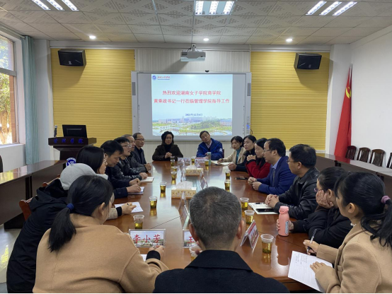 12月6日,湖南女子学院商学院党委书记黄乘政一行来taptap点点交流,taptap点点副校长陈赤平、向前,管理学院领导班子、教师代表参加交流会。双方就学科建设、专业特色凝练、实验室建设等方面进行交流。