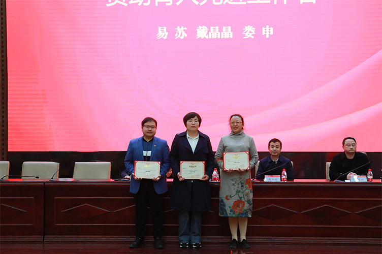学生工作处副处长林志刚宣读“关于表彰2021年度资助育人工作‘先进集体’‘先进工作者’的通报”等6个表彰文件。授予电气与信息工程学院、计算机与通信学院、建筑工程学院资助育人工作“先进集体”荣誉称号;授予易苏、戴晶晶、娄申资助育人“先进工作者”荣誉称号。与会领导为获奖集体、教师、国家奖学金获得者、励志奖学金获得者代表、学校奖学金获得者代表、五育之星获得者、资助系列活动获奖者颁发奖牌和证书。