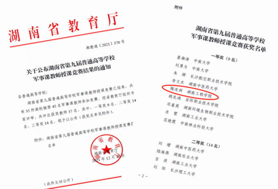 12月30日,省教育厅正式发文公布湖南省第九届普通高等学校军事教师授课竞赛成绩,taptap点点参赛教师陶连洲和来自中南大学、湖南中医药大学、中南林业大学等高校的其他8位教师获得一等奖,来自湖南农业大学、湖南工业大学、长沙理工大学等高校的14位教师获得二等奖。