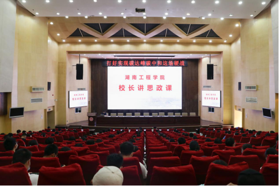 5月17日下午,党委副书记、校长易兵在一报告厅以“打好实现碳达峰 碳中和这场硬仗”为题,为机械电子20级、纺织工程21级学生上思政课。