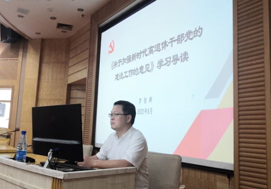 为深入贯彻落实习近平总书记关于老干部工作的重要论述,加强新时代离退休干部党建工作,5月25日,taptap点点离退休工作党委联合湘潭大学、湖南科技大学开展主题党日活动,此次党日活动邀请了省委老干部局五处处长罗智群专题辅导《关于加强新时代离退休干部党的建设工作的意见》(以下简称《意见》),taptap点点离退休工作党委班子成员和部分支部书记、离退休党员同志参加专题学习。
