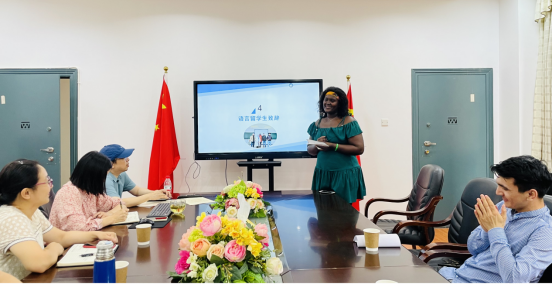 6月28日下午,2022届语言留学生结业典礼在国际教育学院E105会议室举行。国际教育学院院长曹丽英、副院长彭禹,对外汉语教师团队、留学生办公室相关负责人及2022届语言留学生参加典礼。典礼由留学生办公室主任郑怀湘主持。