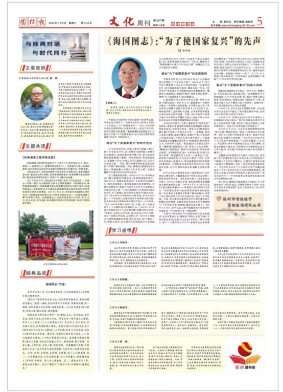 7月2日,民革中央《团结报》文化周刊对民革taptap点点体育支部(以下简称支部)读魏源《海国图志》一书活动进行报道,民革中央《团结报》公众号上还发布了视频进行同步宣传。