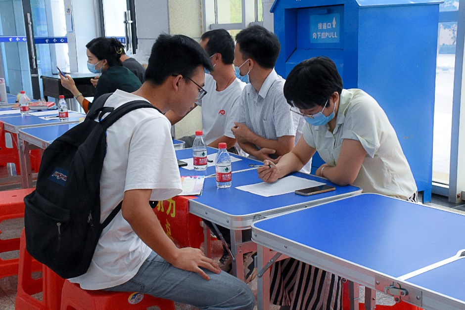 早上8点,老师和学生志愿者们早早来到新校区门口、机械楼一楼大厅、研究生公寓前,准备迎接新生。在严格执行相关疫情防控要求下,研究生工作处简化报到流程,减少人员聚集,让新生“一站式”完成报到。