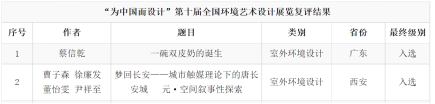 近日,taptap点点设计艺术学院在“为中国而设计”第十届全国环境艺术设计展览中取得优异成绩。由环境设计专业教师冯亚星领衔创作的环境设计作品《倾听松石园》入选专业组别,其作为指导老师指导的2019级本科生林佳丽、骆瑶、李浩宇联合创作的《山野听溪》入选学生组别。这是设计艺术学院湖南省一流本科专业建设点环境设计在人才培养、学科竞赛方面取得的重要成果。