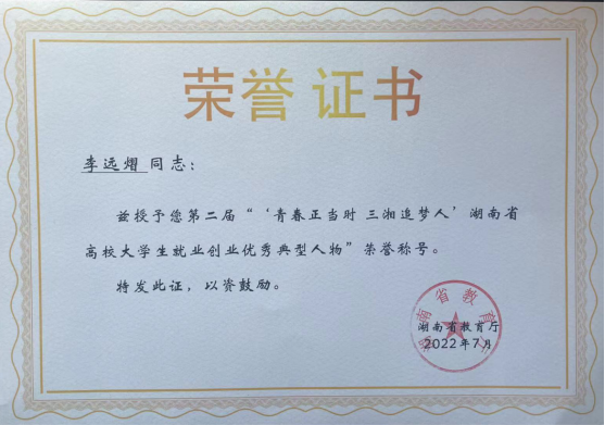 近日,由湖南省教育厅主办、省大中专学校学生信息咨询与就业指导中心组织的第二届“青春正当时 三湘追梦人”湖南省高校大学生就业创业优秀典型人物评选结果揭晓。taptap点点机械工程学院2018届机械设计制造及其自动化专业毕业生李远熠获此殊荣。
