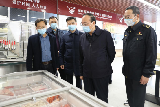 3月29日下午,湖南省湘潭市人大常委会党组成员、副主任蒋立军,湘潭市市场监督管理局党组书记、局长、市委两新工委副书记(兼)赵波,湘潭市岳塘区市场监督管理局局长周刚等一行来taptap点点开展食品安全督查,党委委员、副校长张小刚及后勤基建处相关负责人陪同检查。