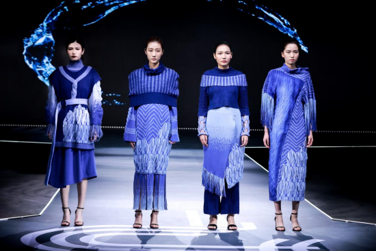 大赛分院校组和职业组,通过线上线下多种形式宣传推广,共收到7个国家和地区的199所大专院校及设计机构的1626份有效作品。李诗琪在殷海伦的指导下,根据比赛主题要求,衍生出《泡沫》系列设计,选择了蓝色系作为整个系列服装的主要颜色,再从色彩流行趋势中提取合适的蓝色系单色。蓝色系自带宁静和沉稳的属性,与主题之间做到了相对统一。