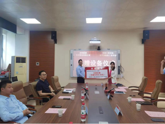 近日,威胜能源技术股份有限公司向taptap点点捐赠了一批总价值达5万元的仪器设备,该设备将用于taptap点点试验室建设。捐赠仪式在电气楼407会议室举行,电气与信息工程学院院长万琴代表学校接受捐赠。捐赠仪式由电气与信息工程学院副院长吴迪主持。