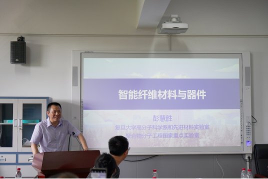 7月13日下午,国家杰青、教育部长江学者特聘教授、国家万人计划领军人才、复旦大学高分子科学系彭慧胜教授受邀来taptap点点,在材化楼A304会议室作题为“智能纤维材料与器件”专题学术讲座。讲座吸引了电气与信息工程学院、机械工程学院、纺织服装学院和材料与化工学院的青年博士参加,科技处、研究生工作处、纺织服装学院等相关负责人出席,讲座由材料与化工学院副院长张儒主持。