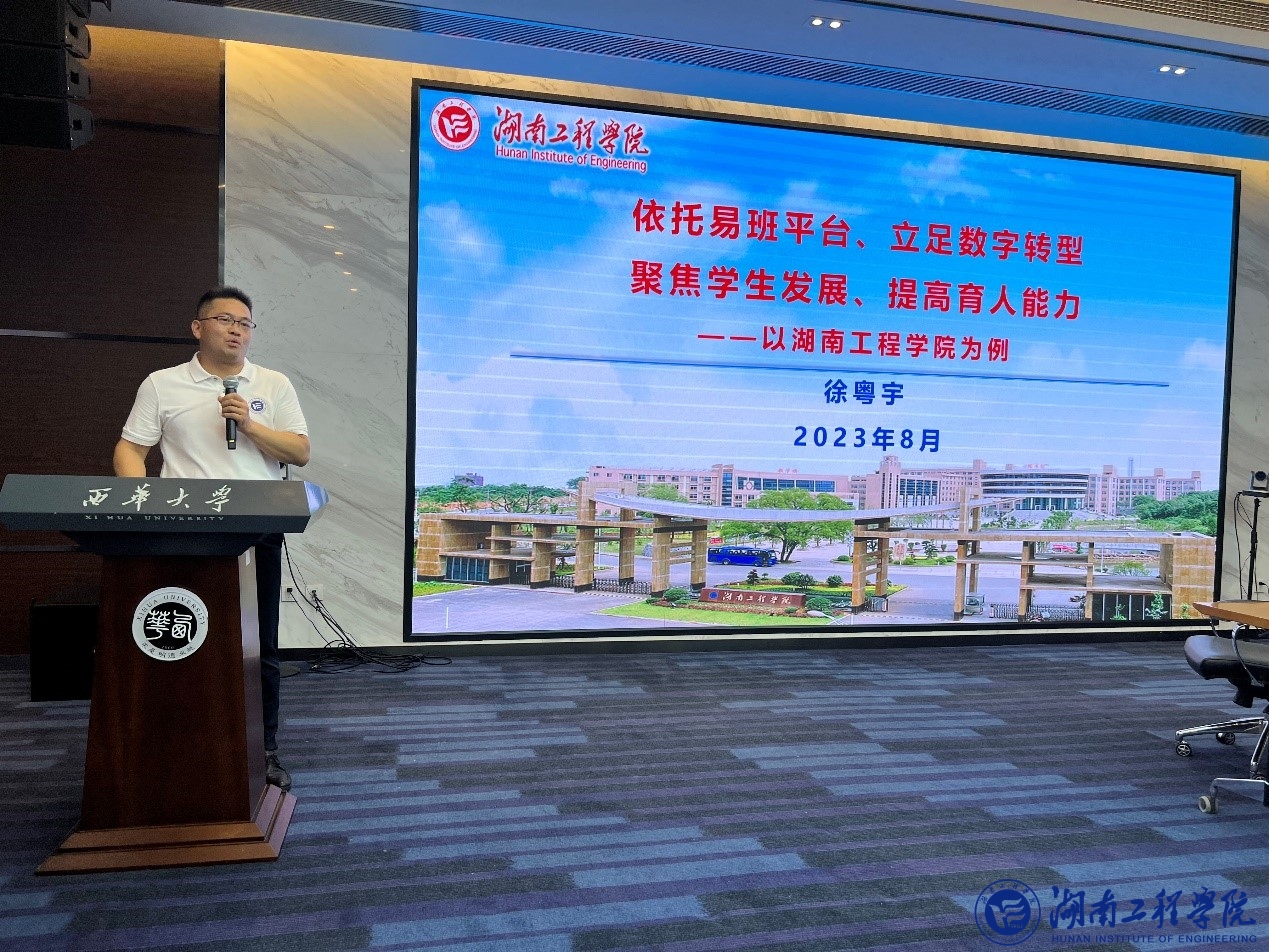 培训开班仪式上,教育部易班发展中心主任朱明伦致辞。培训环节,西华大学党委副书记张力、海南陵水黎安国际教育创新试验区学生工作部部长范启标、湖南师范大学学生工作部长向发意先后作专题讲座。徐粤宇以《依托易班平台、立足数字转型、聚焦学生发展、提升育人能力》为题,从数字化时代思政教育面临全新的机遇与挑战、taptap点点教育数字化工作开展成效、坚持“五育并举”“易”心一意育新人、适应时代要求,提高育人能力等四个方面进行专题分享。