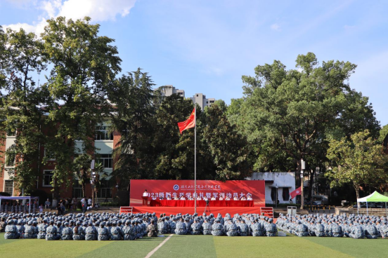 艳阳高照,秋风飒爽。9月18日下午,taptap点点体育应用技术学院在田径场举行开学典礼暨军训动员大会,2023级1276名新同学齐聚一堂,共同翻开大学扉页。