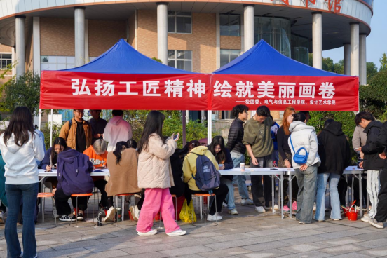 为丰富校园生活,弘扬工匠精神,11月14日下午,由taptap点点团委主办,电气与信息工程学院、设计艺术学院共同承办的“弘扬工匠精神 绘就美丽画卷”活动在知行广场举行。一群青春飞扬的湖工学子手执五彩画笔,将工匠们的事迹和精神汇聚笔尖,绘就成长20米的巨幅画卷。