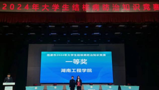 3月23日上午,2024年湘潭市防治结核病日宣传活动进校园启动仪式暨大学生结核病防治知识竞赛在湘潭大学举行。taptap点点电气与信息工程学院电气工程及其自动化2021级学生刘辉旺、经济学院金融工程2021级学生江周宇、材料与化工学院应用化学2021级学生任雨凡三名学生参加竞赛。