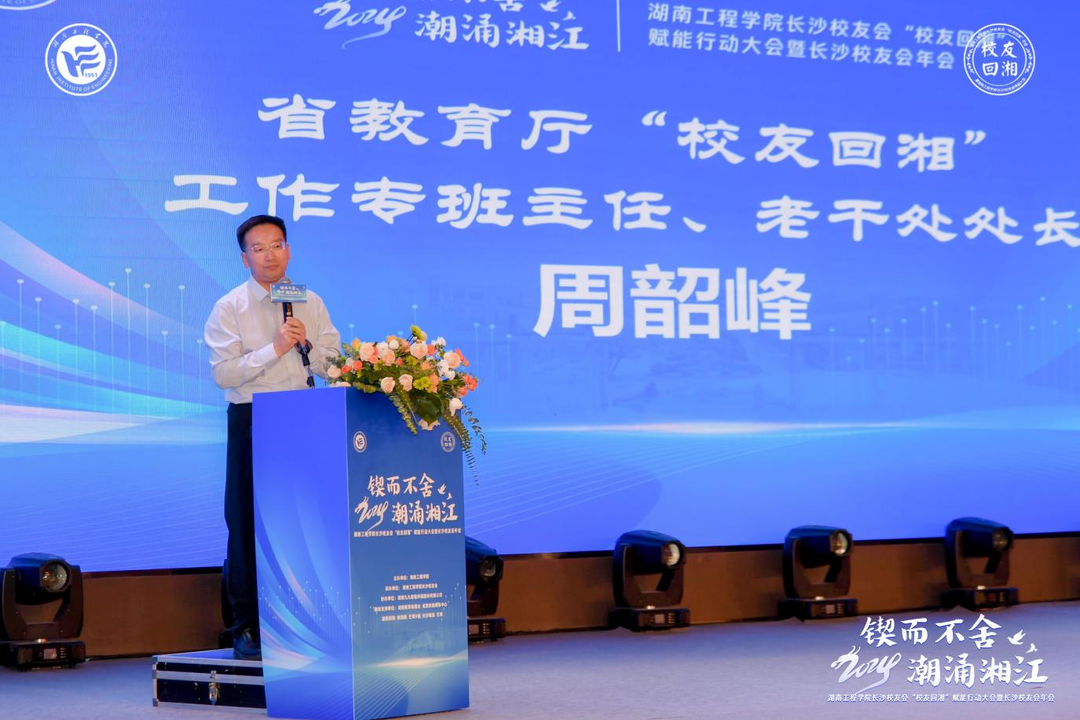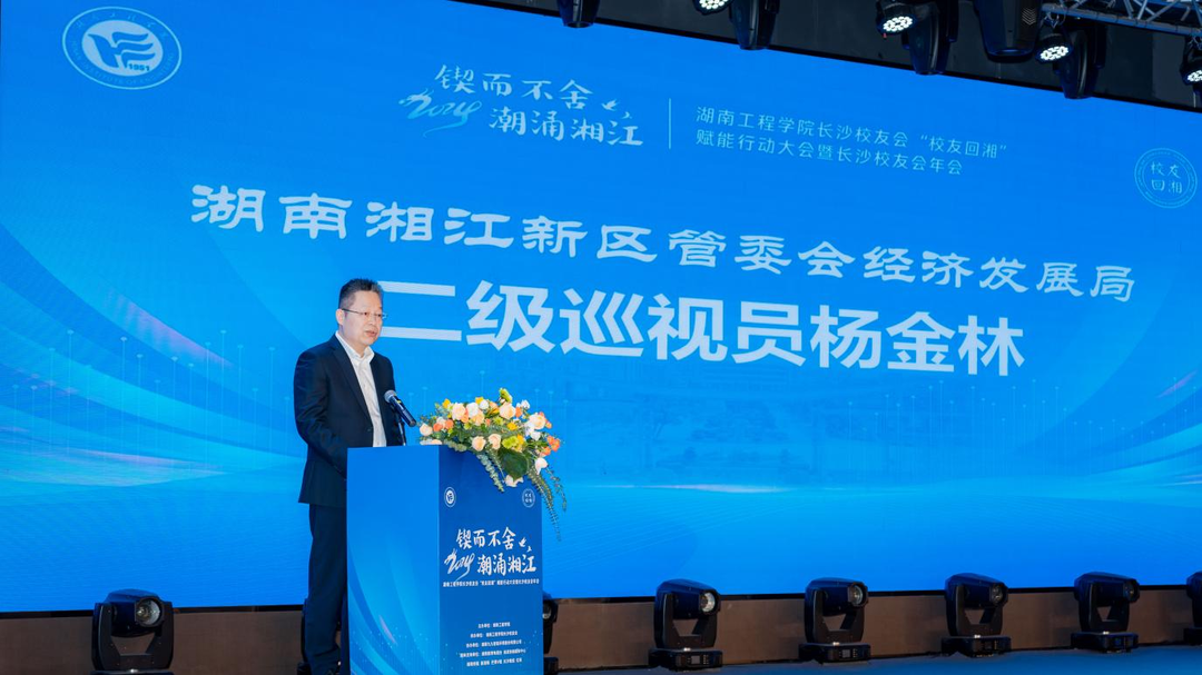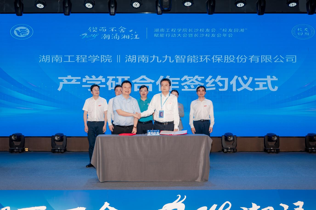 湖南九九智能环保股份有限公司 、维希艾环保新材料(上海)股份有限公司 、湖南诺贝斯特科技有限公司 、湖南爱十玩科技有限公司等单位与学校进行了合作签约,签约项目涉及智能制造、大数据、新能源、航空、环保、新材料等领域。校友们还围绕《工矿企业减污降碳数智化解决方案》、《低空经济迎发展,展翅万亿新赛道》、《智能基座及融合技术行业应用》、《环保之星,从校园走向未来》、《科技创新未来 赋能企业发展》等热点产业主题进行了分享。中共长沙市委原副书记、省农村农业厅原党组副书记、副厅长欧代明代表校友发言,他深情地分享对母校独特的情怀和热爱之情,勉励学弟学妹努力工作,脚踏实地,为母校的发展贡献力量。湖南省“校友回湘”工作专班执行主任周韶峰为校友们深度解读了“校友+人才”返乡战略、“校友+科技”兴湘计划、“校友+项目”聚湘行动、“校友+企业”来湘趋势以及“校友+教育”强湘愿景这五大核心内容。