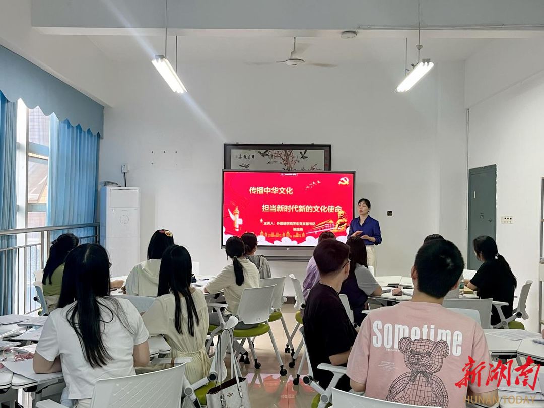 “是什么让传统文化在青年群体中如此‘燃’?”作为新时代的青年,我们该如何担负新时代新的文化使命呢?”从两个问题展开,张琼燕为毕业生党员讲授了“传播中华文化 担当新时代新的文化使命”主题党课。课上,她和毕业生党员一同回顾与外国语学院的奇妙缘分和难忘时刻,阐释“正青春”的青年党员在新时代的责任与担当。“在新的起点上继续推动文化繁荣、建设文化强国、建设中华民族现代文明,是我们在新时代新的文化使命。”她鼓励青年党员在学思践悟中坚定理想信念,在实干实绩中锤炼党性修养,树立高远志向,擂响人生梦想的“出征鼓”。