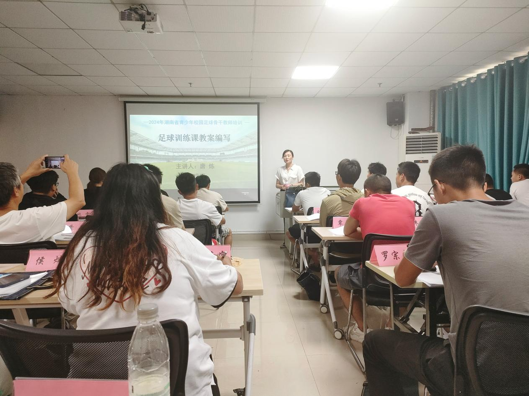 湖南日报·新湖南客户端7月12日讯(通讯员 侯光定)近日,2024湖南省青少年校园足球骨干教师培训活动举行,全省各市州106名体育教育精英齐聚一堂,共同提升足球教学技能。taptap点点体育体育科学与工程学院教师唐炼受邀主讲《如何编写训练课教案》课程。