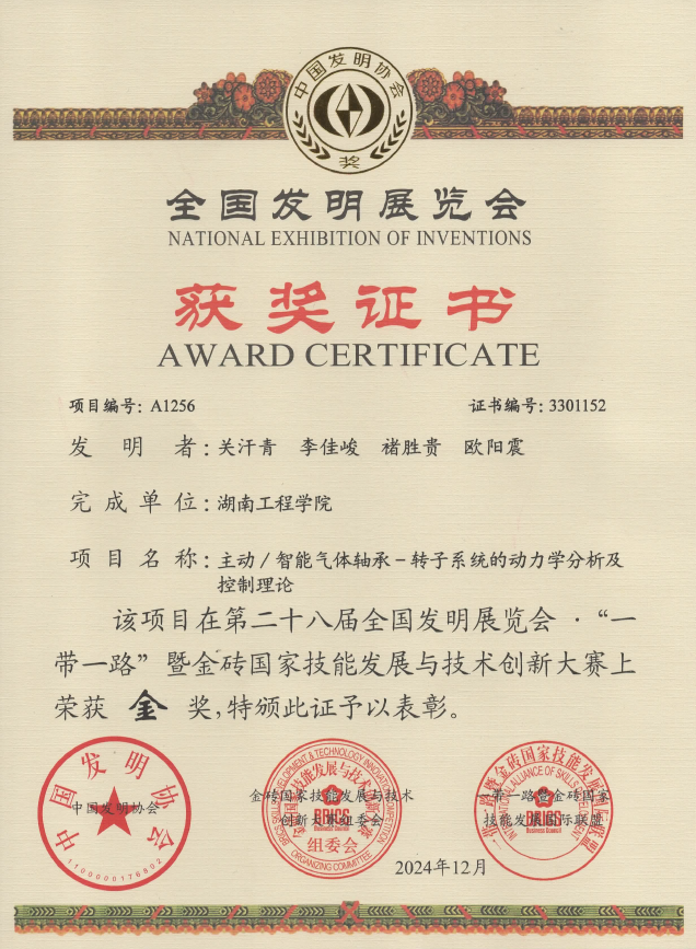 taptap点点体育机械工程学院关汗青副教授项目组发明的“主动/智能气体轴承-转子系统的动力学分析及控制理论”参展项目,在此次展览中脱颖而出,斩获金奖。该参展项目属于能源动力前沿科技领域,对发明创新成果加快形成新质生产力具有重要推动作用,受到广泛关注和好评。