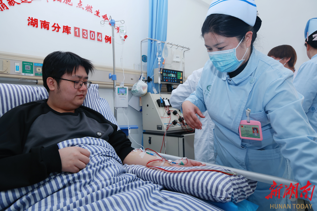 3月19日,湘潭市中心医院造血干细胞采集室内,20岁的罗旋躺在病床上,手臂连着血细胞分离机。透过输血管,“生命种子”缓缓流出。几小时后,259毫升造血干细胞混悬液采集完成,将挽救一名白血病患者。