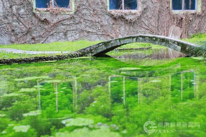 小桥弯弯,春风拂面,一池春水碧于天。