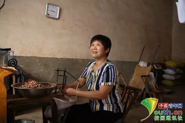 志愿者在当地农户家发现他们以取芯为主要谋生方式,奶奶正在取芯,传统的手艺,陈旧的机器,是岁月的沉淀,是奶奶对美好生活的追求。(中国青年网通讯员 李玮男)