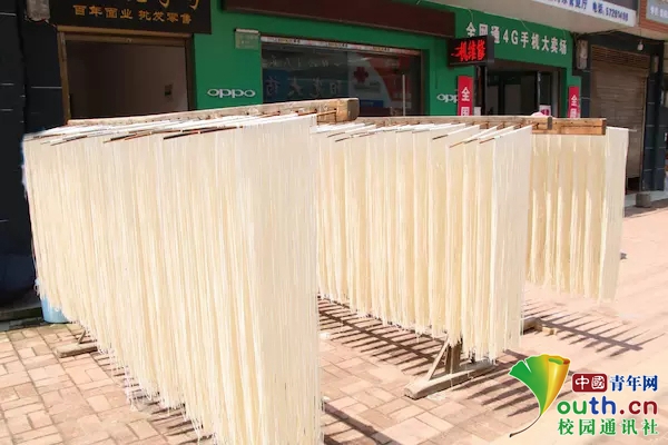 飞速变化的生活中,古老的传奇依然在上演。志愿者们被晒在路边的一缕缕“帘子”吸引,走进门店,随后与店长聊起了面条的故事。(中国青年网通讯员 李玮男)