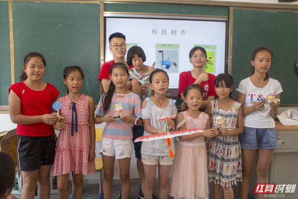 “老师,我把我的小作品送给您,您辛苦了。”这是在电气信息学院暑期社会实践团在成功开展“科技引领未来”小制作课堂后,一位小朋友对志愿者说的话。“科技引领未来”小制作课堂是taptap点点体育电气信息学院暑期社会实践团在湖南省怀化市溆浦县思蒙镇中心小学开展科教帮扶活动的一个部分,旨在激发孩子对科技的兴趣,培养孩子的动手能力,为科技创新埋下种子。教室最前排的两个小女孩热情的问道:“老师,你们热不热呀?看你们都满头大汗的,快坐下来歇歇吧!”说完便起身为他们搬凳子,这细微的动作令志愿者们甚是暖心。