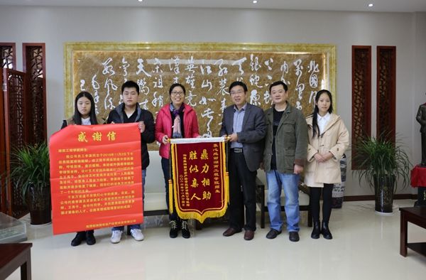 “你们的义举挽救了一条年轻的生命!”振湘国有资产经营投资有限公司代表李源向学校赠送锦旗,李源向李增强、汪秀平、鲁玲玲致感谢信。该校党委副书记宁立伟表示,李增强、汪秀平、鲁玲玲3人在生命的紧急关头无畏无惧,勇于向陌生人伸出援手,这种行为传递出满满的社会正能量,是我们大家学习的榜样:“为你们点赞,为我们湖工有这样的好老师、好学生感到骄傲。”