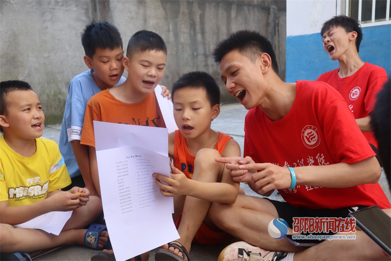 “我和我的祖国,一刻也不能分割,无论我走到哪里,都流出一首赞歌”悠扬的歌声传出,这是志愿者们在教孩子们《我和我的祖国》。志愿者们用火热的青春激情,带着孩子们用稚嫩的童声把歌曲里蕴藏的深深的爱国之情唱了出来。