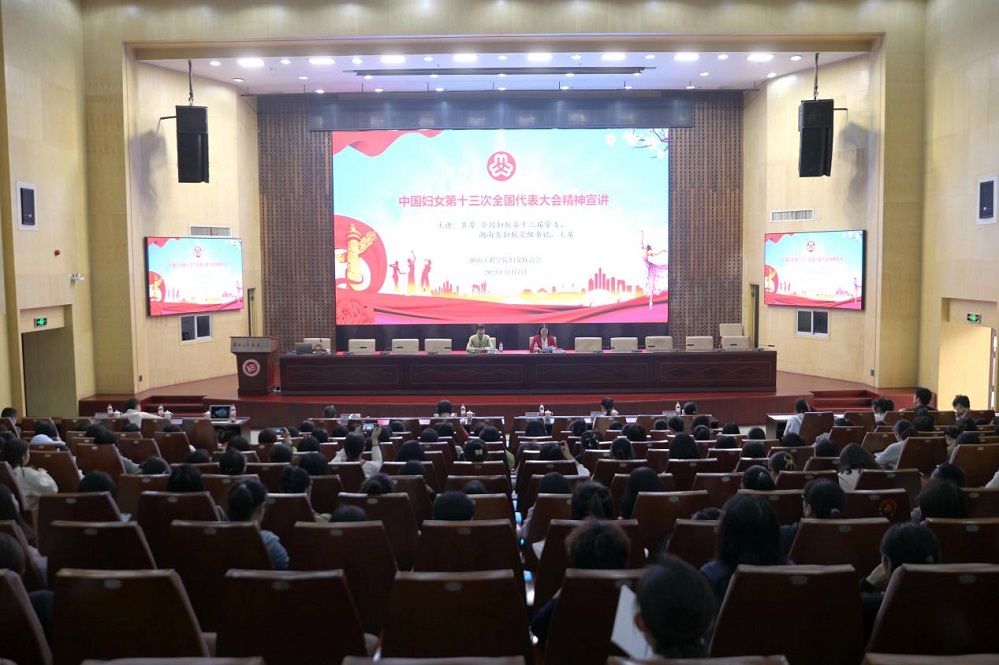 宣讲中,黄芳分享了10月23日至26日在北京召开的中国妇女第十三次全国代表大会盛况和会议期间的所见、所闻、所思、所感,重点学习了习近平总书记同全国妇联新一届领导班子成员集体谈话时的重要讲话,以及丁薛祥同志代表党中央所作的致词、谌贻琴同志在大会闭幕式上的讲话、黄晓薇同志代表中华全国妇女联合会第十二届执行委员会所作的工作报告等。现场师生纷纷表示,宣讲既有深度,又有高度,更有温度,大家深受教育、倍感振奋。