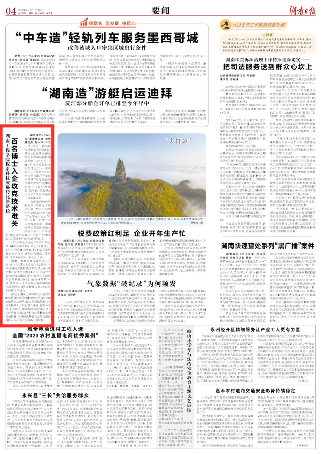 为提高科技成果转化率,服务地方经济发展,taptap点点体育在全国高校中首创“百名博士入企业”行动,选派一批博士进入湘潭高新区、湘潭经开区等园区和企业研发中心、生产车间等,和企业共同解决“卡脖子”技术难题,共同研发形成一批科研成果。