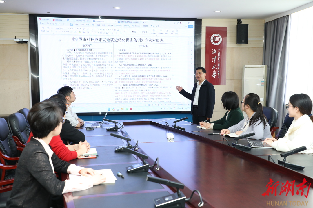 前不久,湘潭市人大教科文卫委员会组织召开会议,就正在制定的《湘潭市科技成果就近就地转化若干规定》,征求各方意见建议。该市多个部门、多所高校,就该法律条例展开的“头脑风暴”也相继举行。