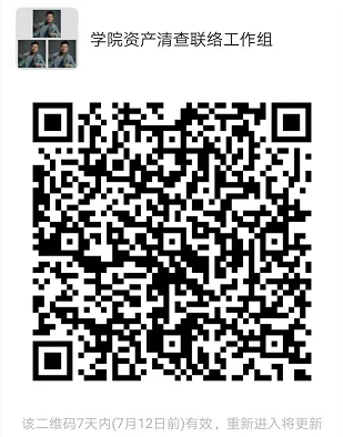 1、各位老师务必要高度重视,设备购买人是本次资产清查工作第一责任人,请第一责任人选择资产联络员配合学院进行资产清查,同时进一步明确使用人、监管人,切实落实责任到人制度。资产联络员请于7月6日(周二)12:00前扫码进群(见附件)。